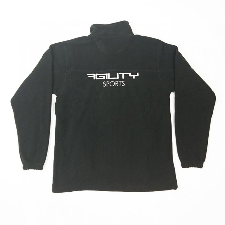 Fleece jacket for men in black. On the back "Agility Sports" lettering in silver (embroidered)