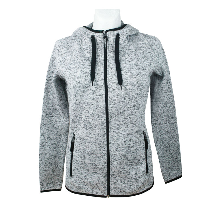 Women Knit Fleece-Jacket with hood lightgrey
