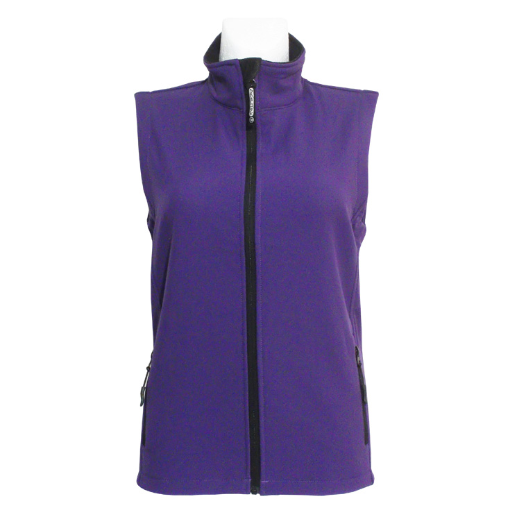 Softshell vest for women in purple, on the back curved "Agility Sports" lettering in pink