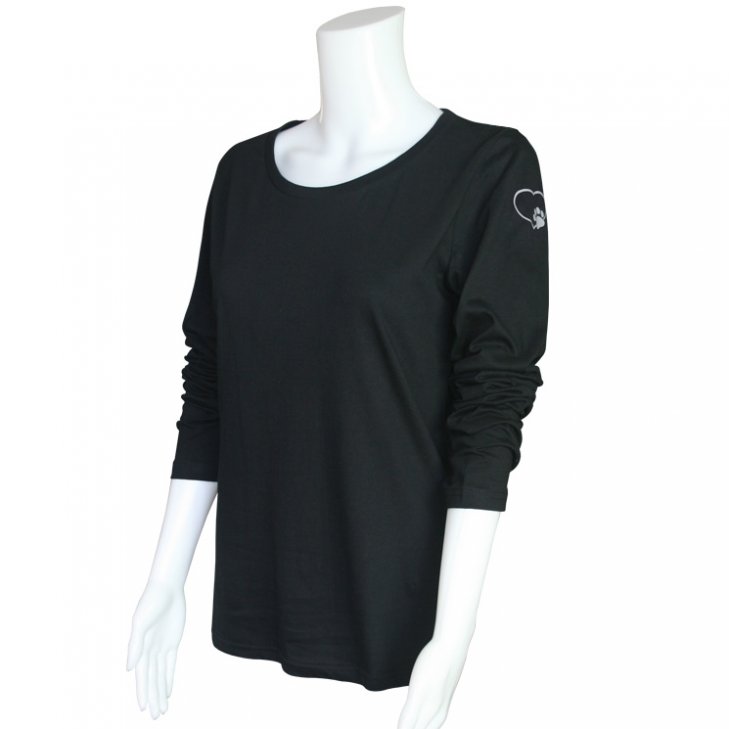 Long Sleeve for women in black. On the upper left sleeve a little heart with paw in grey. The shirt is also suitable as an under-shirt for our T-shirt collection.