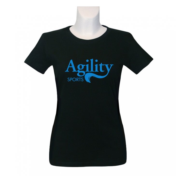 Women-T-Shirt in black with Agility-Sports-lettering in blue