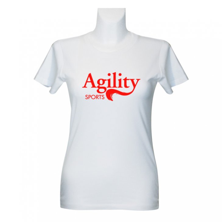 Women-T-Shirt in white with Agility-Sports-lettering in red