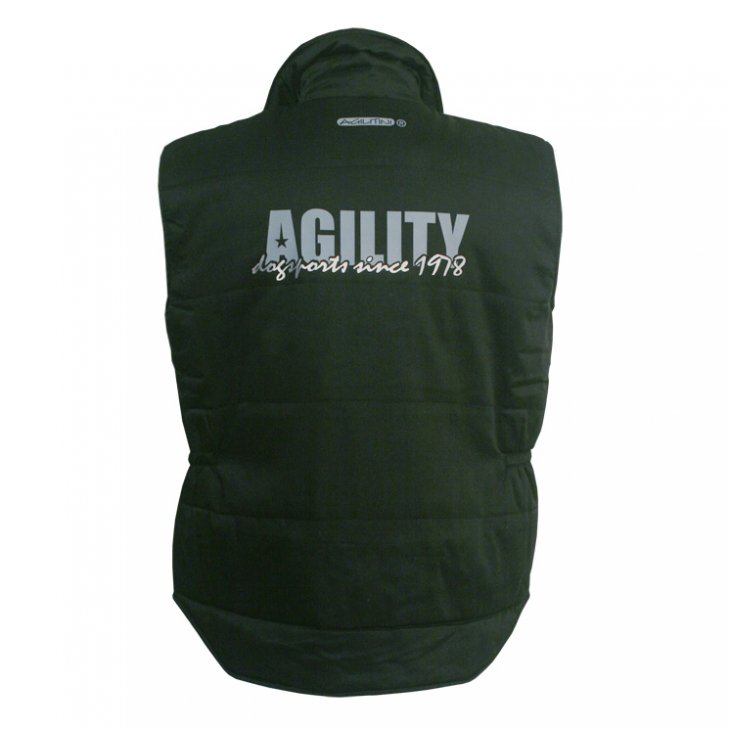 Padded unisex Winter Vest in black. On the back "Agility" lettering in grey and silver.