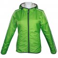 Sporty women's winter jacket in green. Wind and water repellent. Warming teddy lining in off-white and adjustable hood. Reflective piping on sleeves.