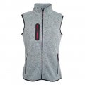 Knit fleece vest for women in lightgrey. Outside in knitted look, inside fluffy, softly roughened. Side pockets with zip and a breast pocket. On the back curved "Agility Sports" lettering in black (embroidered).