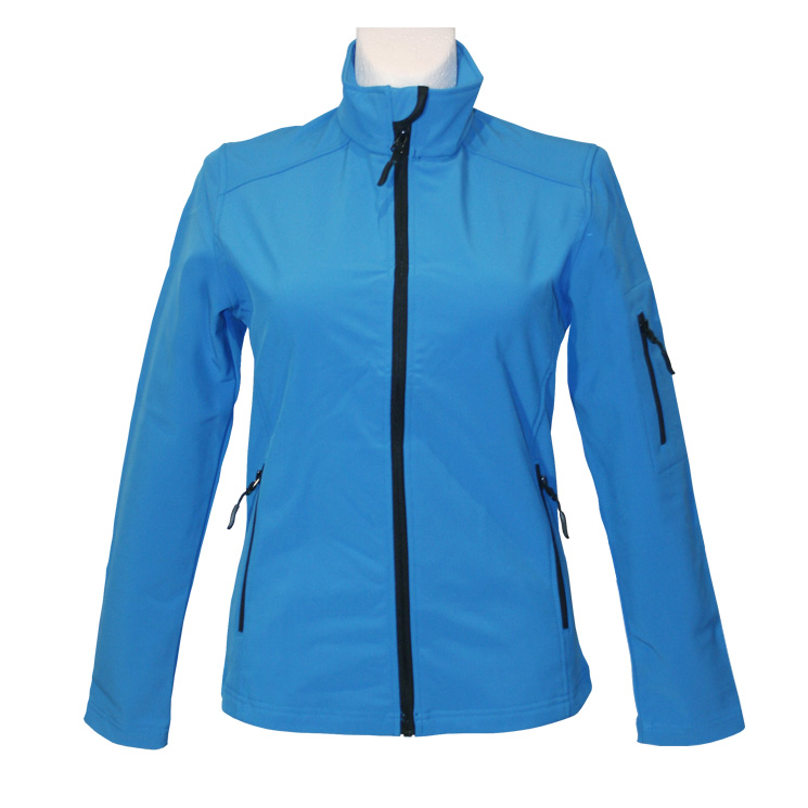 Damen Softshell Jacke blau mit Rückenaufdruck in schwarz
