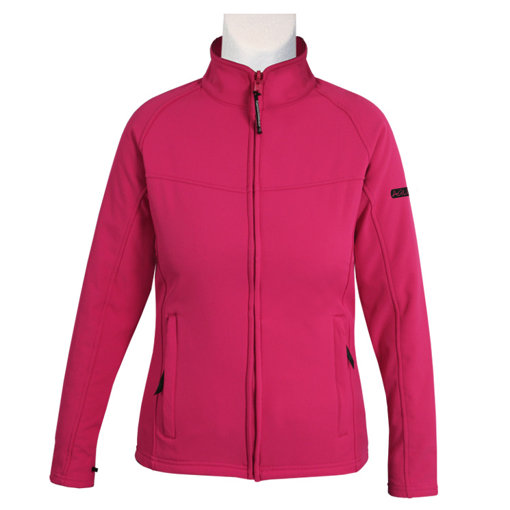 Damen Softshell Jacke pink mit Rückenaufdruck in schwarz