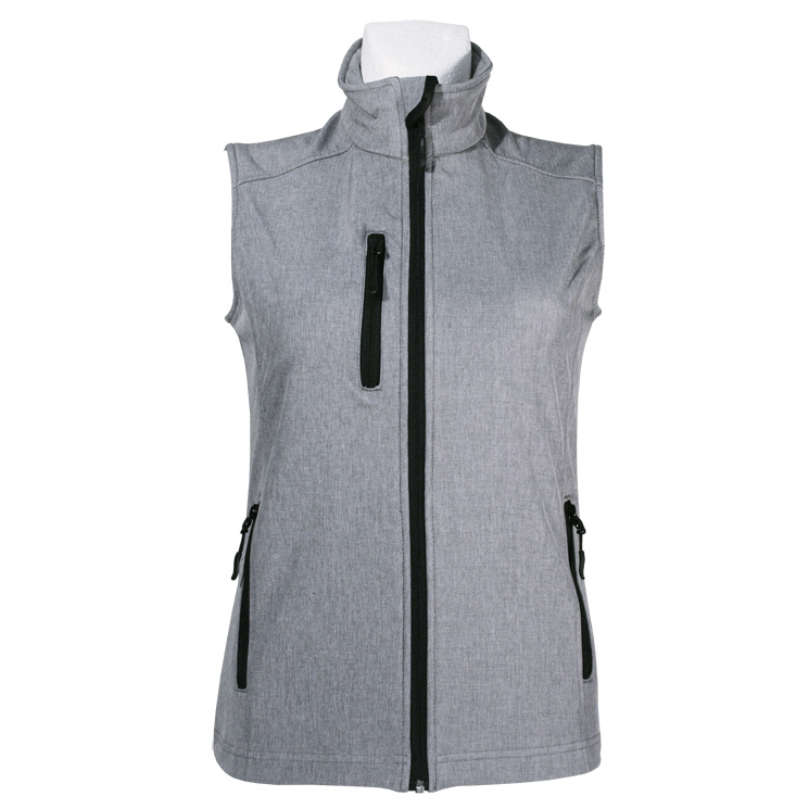 Damen Softshell Weste hellgrau mit Rückenaufdruck in schwarz