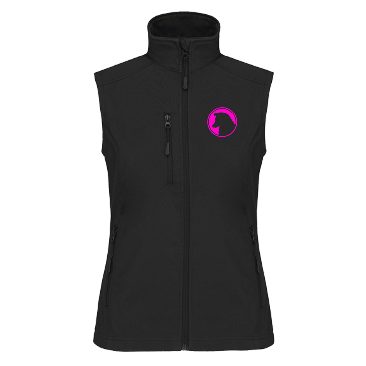 Damen Softshell Weste schwarz mit einem Sheltie-Aufdruck in pink