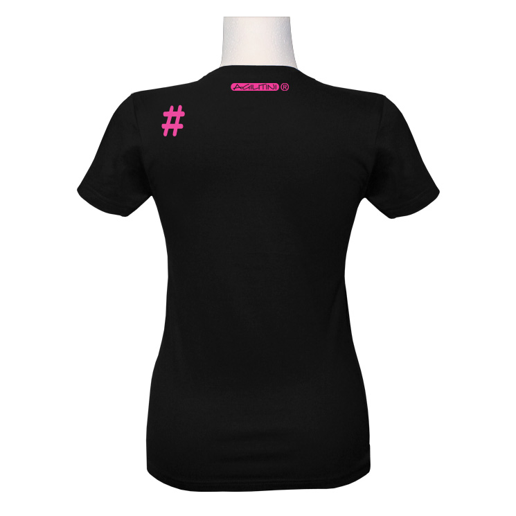 Damen T-Shirt in schwarz mit # Agility-Aufdruck in pink/weiß